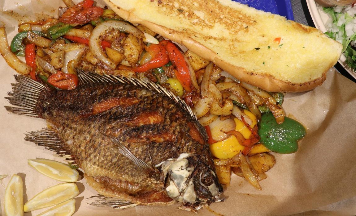 I'm a sucker for whole fried fish and so we had to order theirs. If you love the Shrimp Tray but want to switch things up - this is a great option. It features the same fajita veggies, potatoes, and garlic bread but a fried Tilapia instead. Though you could go crazy and add some shrimp in there too if you wanted!