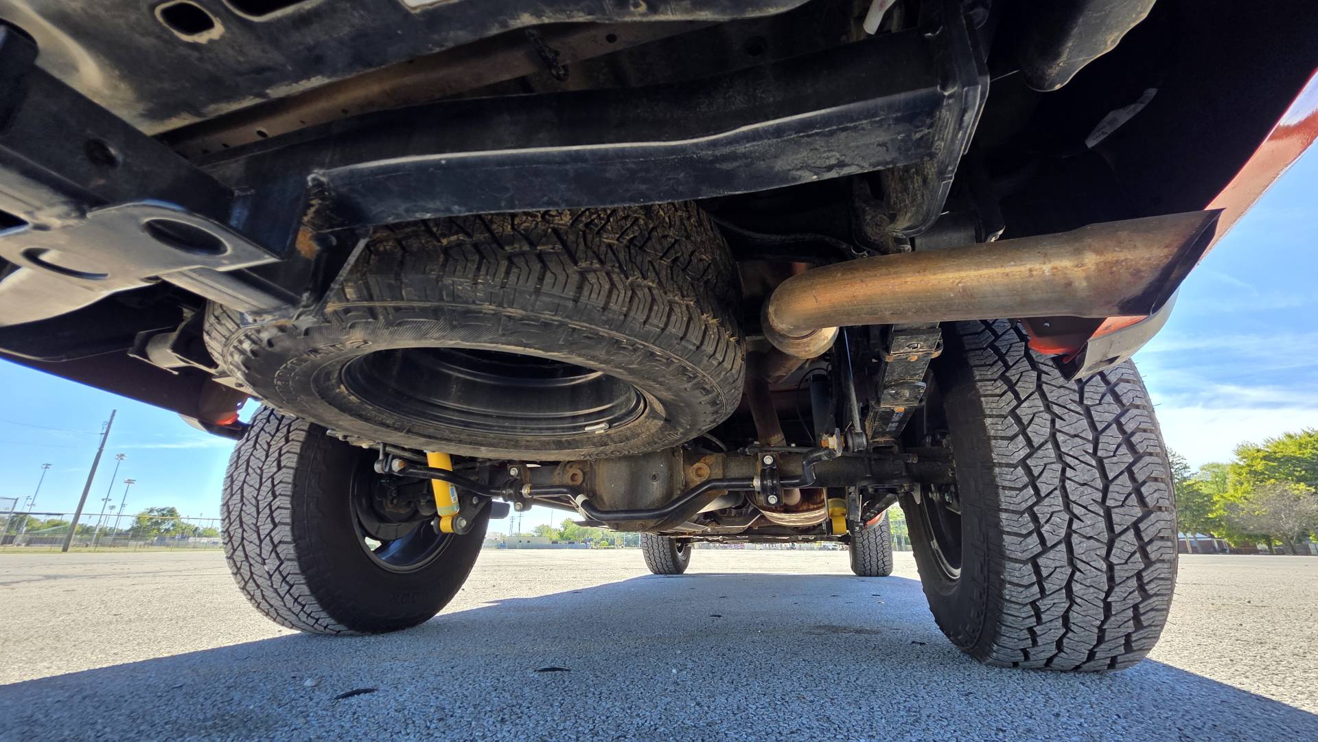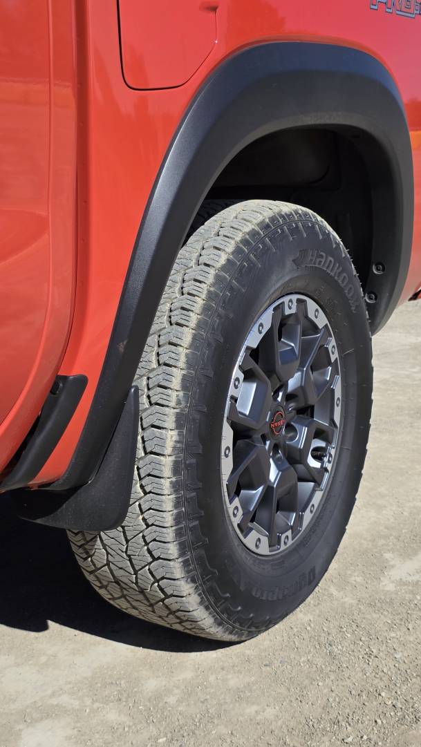 The Pro-4X comes equipped with Bilstein off-road suspension components, an electronic locking rear differential, and all-terrain tires - the trifecta of genuine trail capability. Those overfenders aren't just for show; they protect the body when navigating tight trails or winter backcountry roads. The Lava Red tow hooks add a functional pop of color while providing real recovery points.