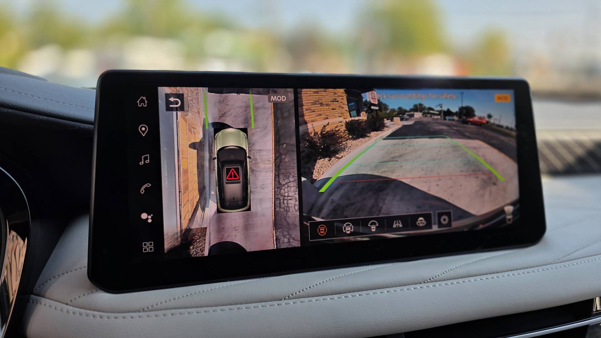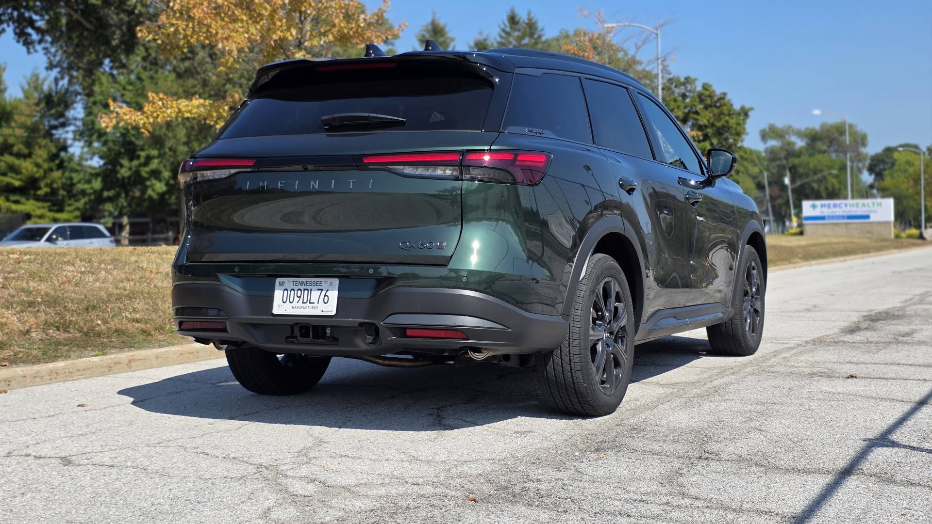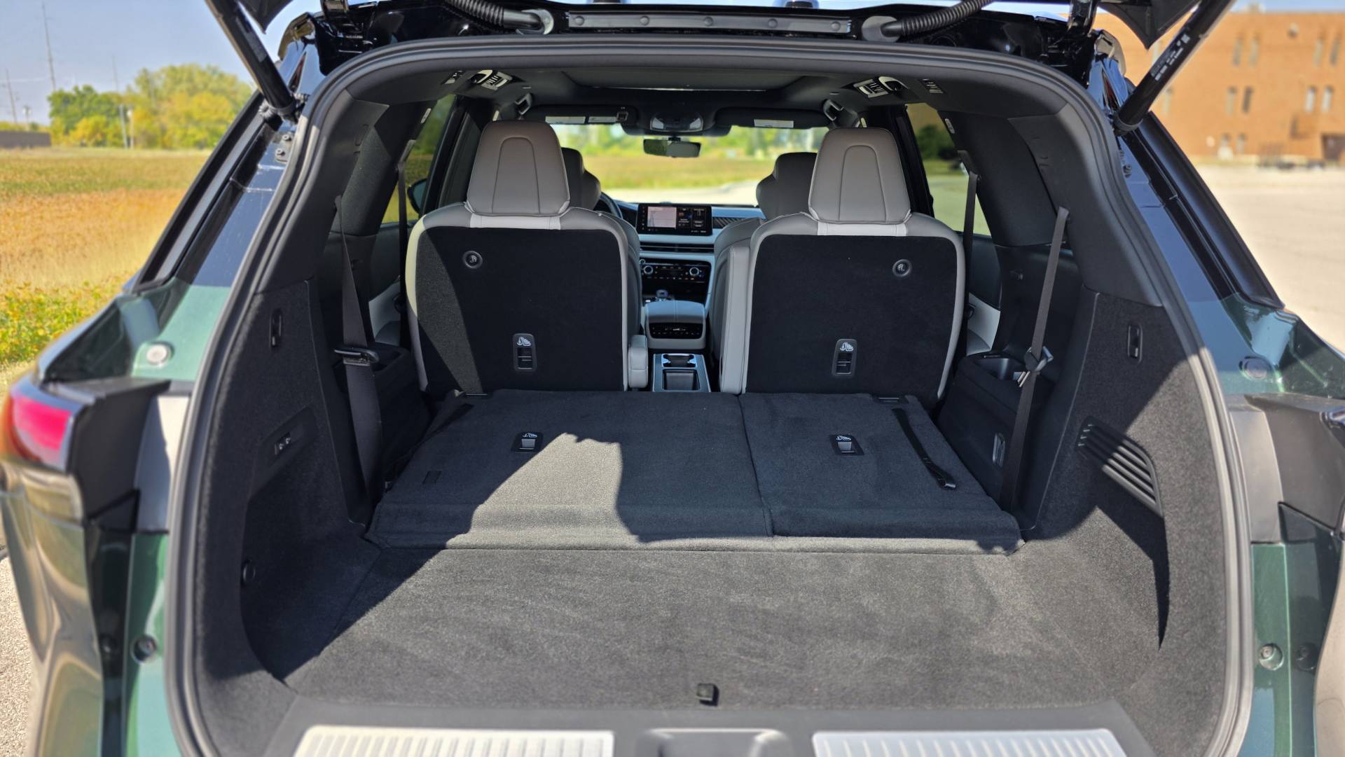 If you've driven a Pathfinder, you already understand the QX60's architecture. Same platform, familiar seating position, similar sight lines. The difference is what Infiniti has done on top of that foundation. The steering wheel is wrapped in leather that holds its character. The seats - quilted semi-aniline with massage function and 8-way power adjustment in the Emerald Green and Stone Gray Autograph I drove - earn their keep on a long stretch. My wife Heather would have been more than comfortable in the heated and ventilated second-row captain's chairs. That's the kind of thoughtful detail that separates this from its mainstream sibling.