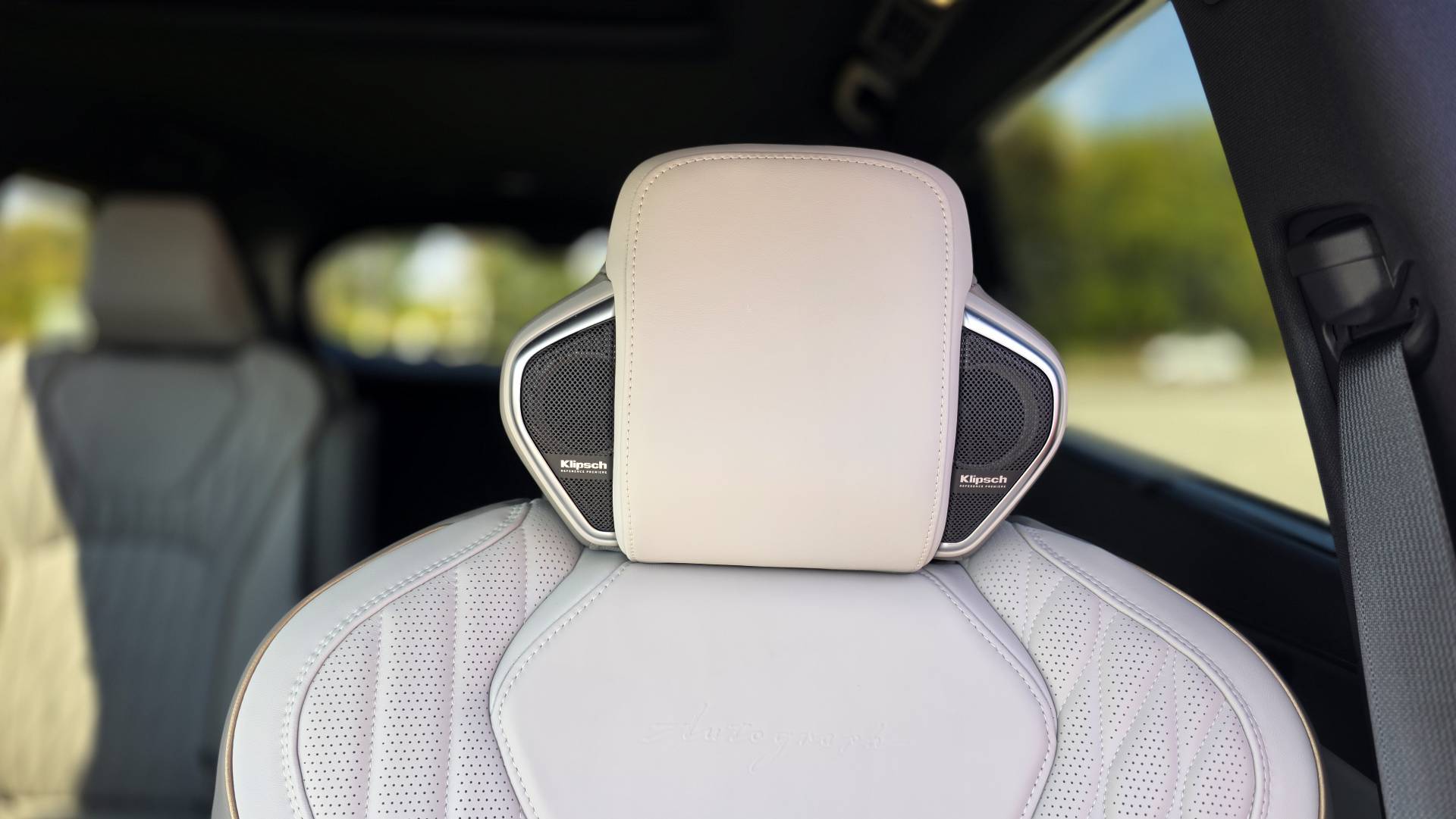 - The 20-speaker Klipsch Reference Premiere audio system includes headrest-mounted individual audio, letting the driver take a phone call or hear navigation without disturbing sleeping passengers in the back.