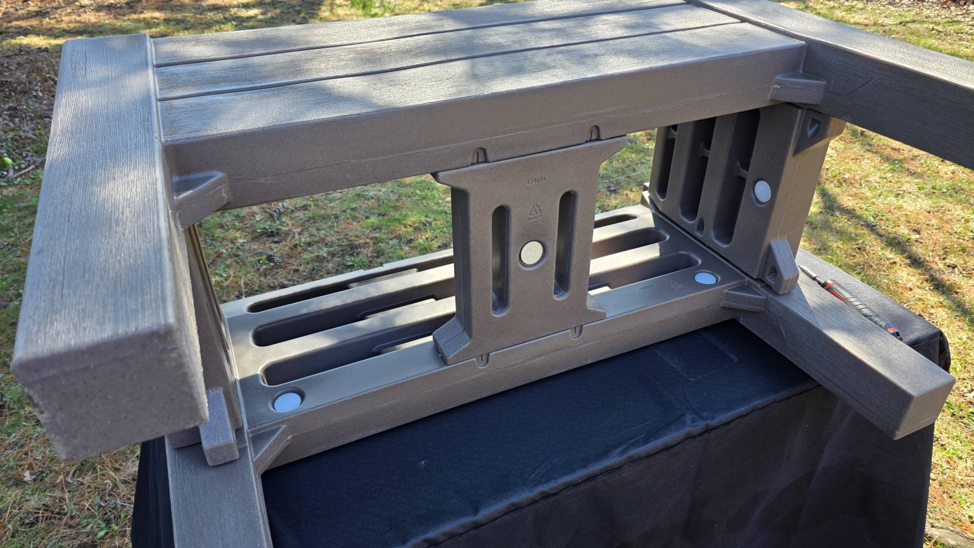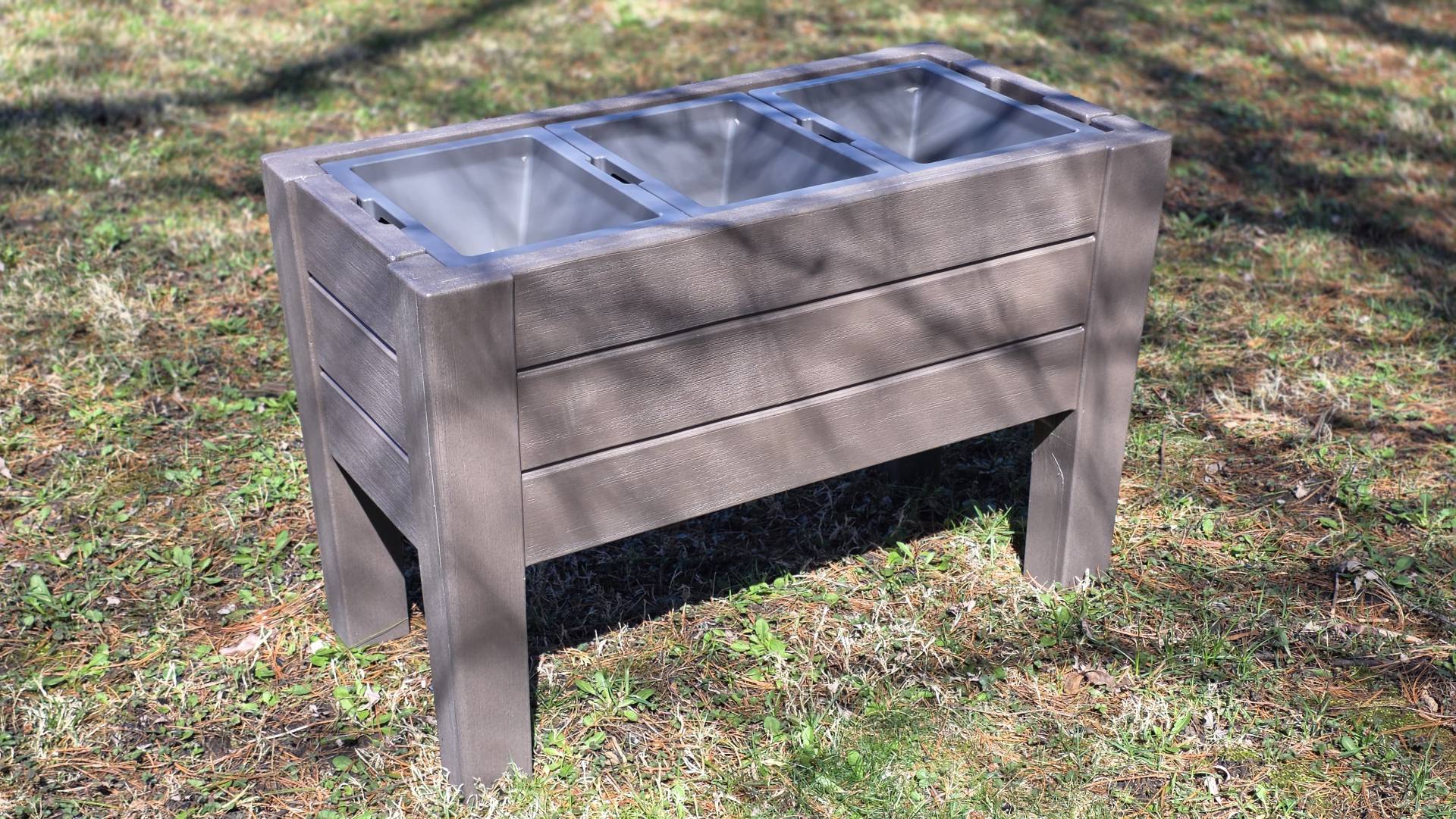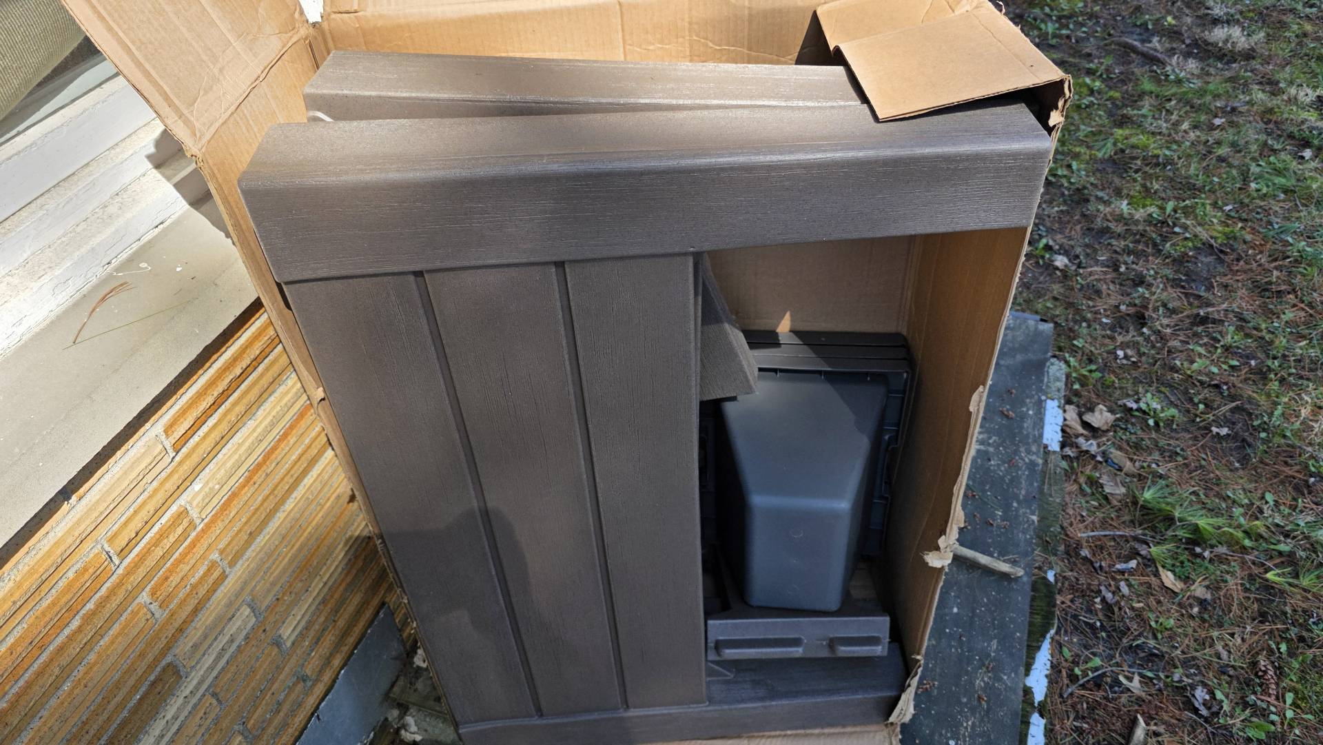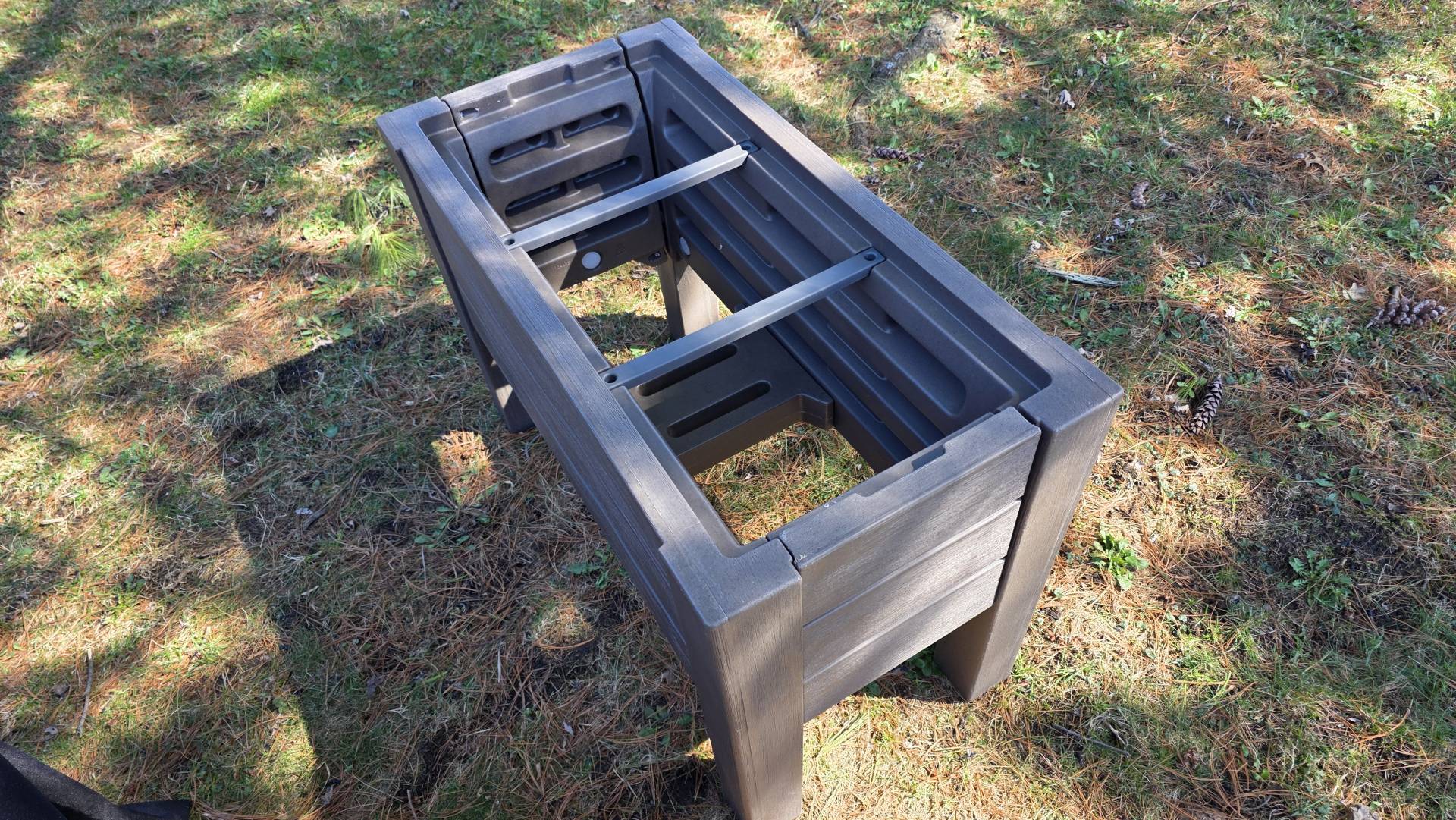 Plan for that extra step, especially if you're assembling in cold conditions. Have a cordless drill and a bit set on hand before you start. Once everything was fastened, the planter was rock solid - no flex, no wobble anywhere in the structure. The dark cedar finish does a convincing job mimicking wood grain from a few feet away. Most resin products look like plastic up close; this one holds up better than expected.