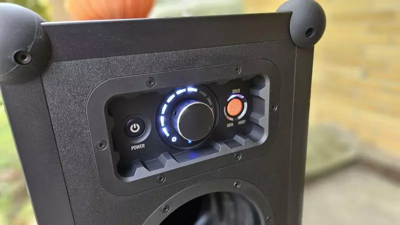 I really liked the little touches here. For instance, it would have been easy to just have a plain black knob for the volume but this one features a bright series of LEDs that indicate the volume level as you turn it. Along with that, it has a easy to press power button that you don't even have to lean over to use.