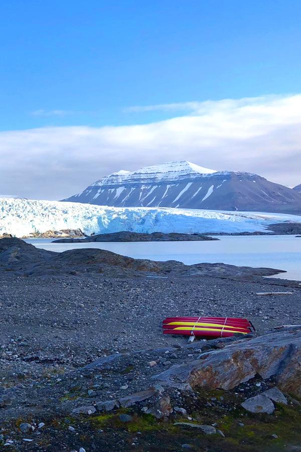 An example of a five-day “Night on a Glacier” itinerary with Off the Map Travel costs from $8,353 USD per person at the time of this writing, based on double occupancy. Included are all transfers, three nights in Longyearbyen on a B&B basis, two nights at Nordenskiold Lodge exclusively booked on a full board basis, kayaking, Zodiac boat safari, glacier climb, and summer dog sledding. Flights are additional. All itineraries can be customized to add additional days and nights.