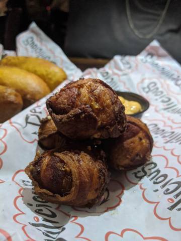 Devilicious Eatery - Imagine a place where not one menu item was "basic". I first experienced Devilicious as a food truck years ago but now that feisty gang of foodies has grown up. Now they have 50 some taps with local, regional, and national craft beers, craft soda, and crazy good foods to eat like Bacon Wrapped Mac & Cheese Balls, Blue Cheese Bacon Stuffed Jalapenos, Short Rib Melt (red wine braised short rib, cheese curds, onion jamp, and garlic aioli on ciabatta bun!), Pork Belly Melt (smoked pork belly, brussels, gruyere and mozzarella cheese, fig balsamic, on butter-toasted sourdough) and their world-famous Butter Poached Lobster Grilled Cheese. Of course, you'll want to upgrade those to include the Bacon Garlic Fries!