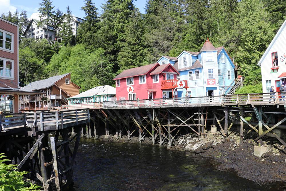 Creek Street Ketchikan is one of the most unique historic areas that I've ever experienced and it is a must-see for anyone who loves fishing, history, shopping, or unique architecture. Like other parts of Ketchikan, the settlers here decided to build their city out over the water rather than blast the rock away. Here, they built a thriving red-light district complete with bootleggers and prostitution. Today though, while names like "Married Man's Trail" (formerly a secret path so that men could discretely visit the working girls) still exist and there is even a brothel museum, it's mostly art galleries and tourist shops. Depending on the tide, you'll also be able to view the salmon swimming here as well.