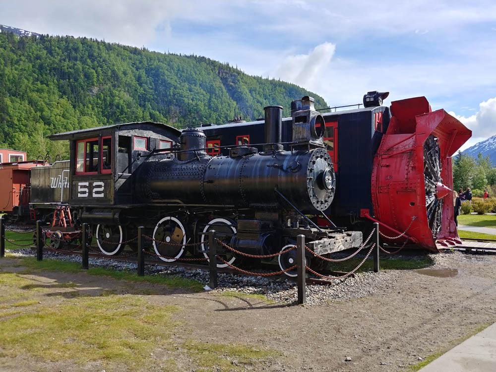 While there are tons of excursion ideas too, Skagway is a great place to visit and simply just walk around too. There are pocket parks, unique shops - for guys as well as the ladies, food ranging from elk jerky to fry bread. There's also these two trains positioned just before you get into the downtown area from the cruise ship docks. If you've ever wondered how the railroads up there could clear the feet of snow that fall ... this is how. The giant rotary snowplow dates back to 1899 and supported by two helper engines, could push through up to 12 feet of snow that sometimes covered the tracks. It was retired in 1965 but was used as recently as 2001 for a ceremonial demonstration.
